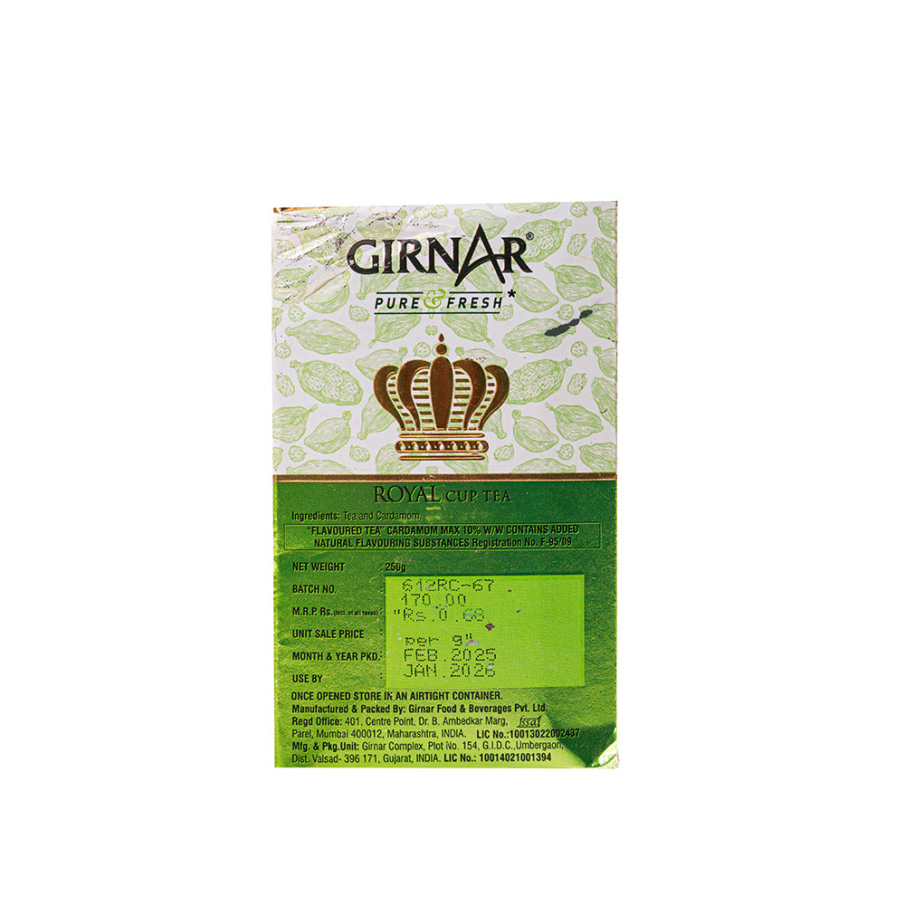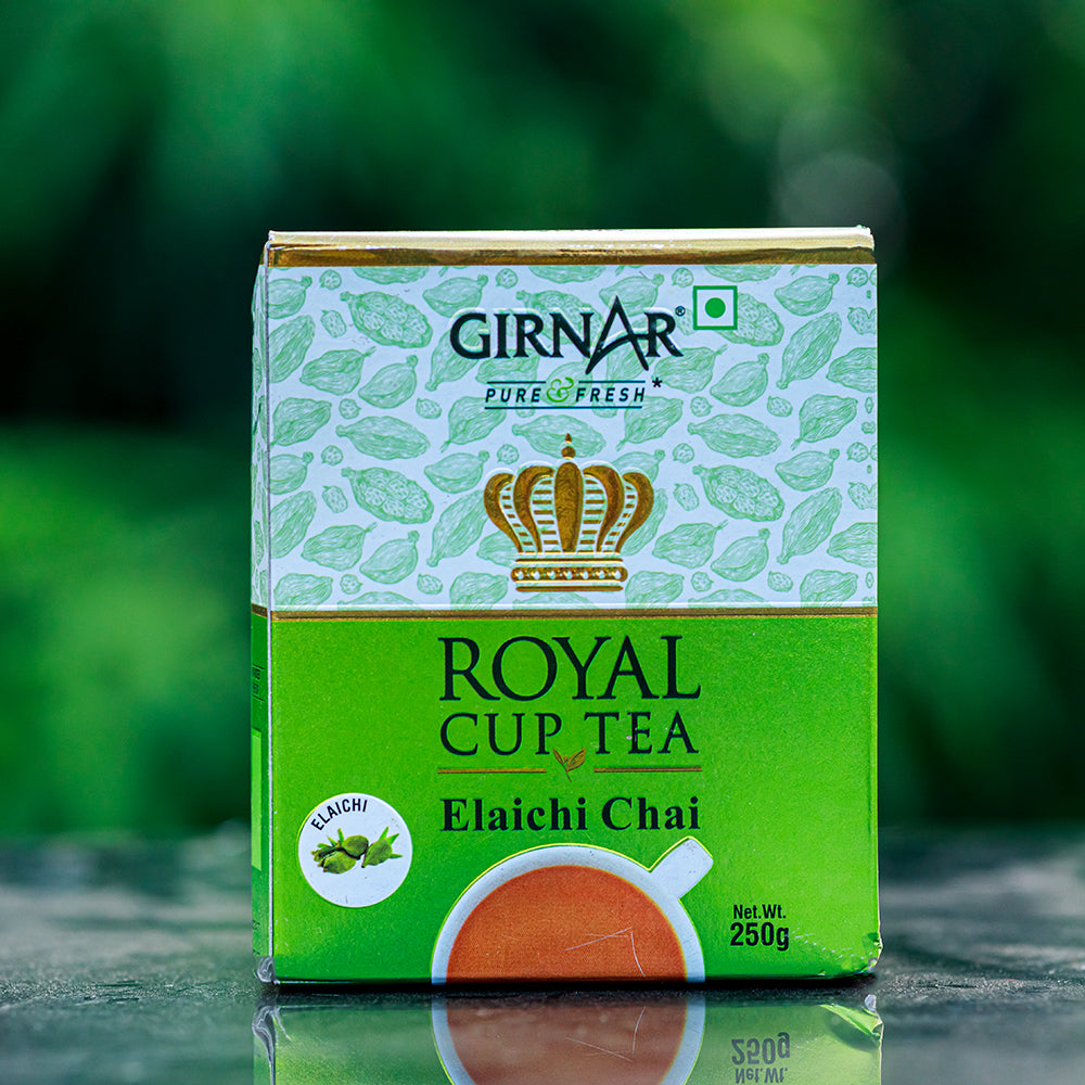 Girnar Elaichi Chai is a flavored tea blend that highlights cardamom, a popular spice known for its aromatic and slightly sweet flavor. It is crafted to provide a refreshing and aromatic tea experience, combining black tea with the distinctive taste of cardamom.