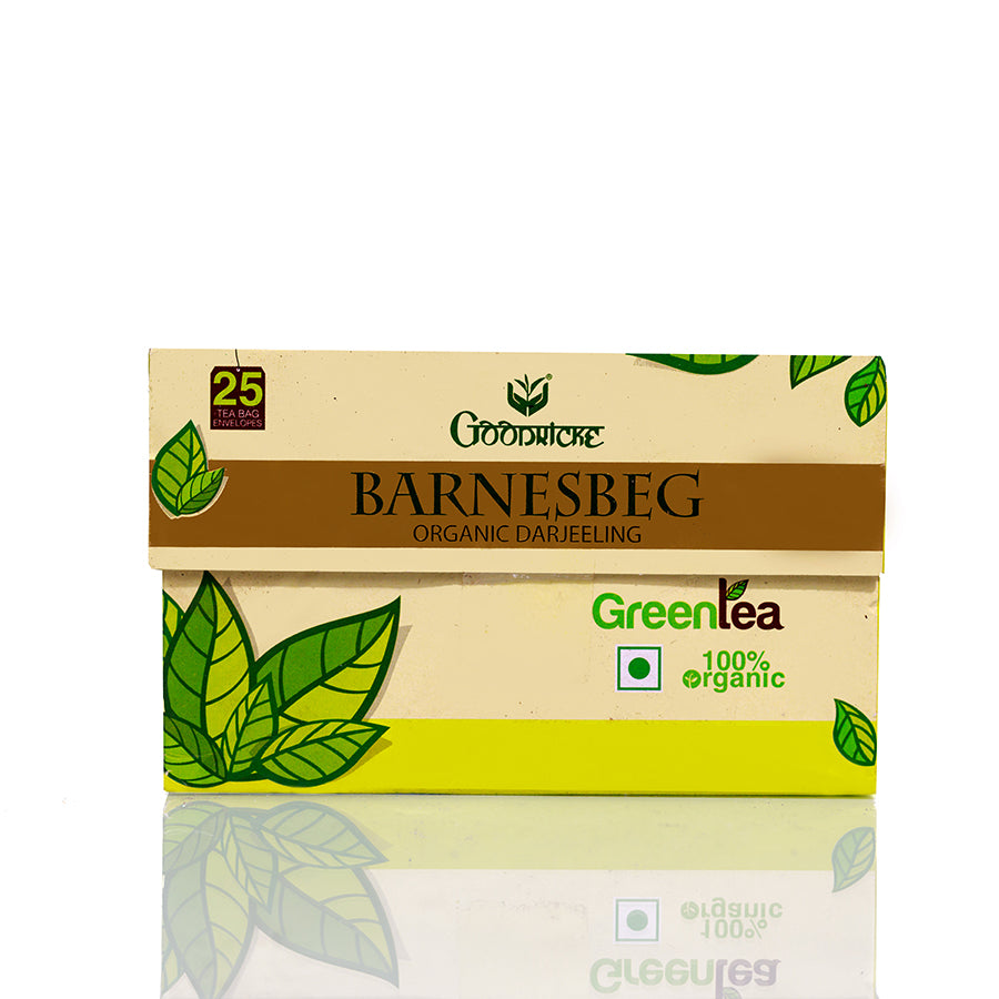 Goodricke Barnesbeg Green Tea Bags are crafted from high-quality green tea sourced from the Barnesbeg Tea Estate in Darjeeling, India. Renowned for its commitment to organic farming and sustainability, this estate produces green teas that capture the freshness and unique flavors of the region. The convenience of tea bags makes it easy to enjoy a delightful cup anytime.Goodricke Barnesbeg Green Tea Bags (25 pieces) are perfect for those seeking a convenient way to enjoy the refreshing qualities of green tea. Best enjoyed plain to fully appreciate its delicate flavors and aromas, this tea is ideal for any time of day, making it a delightful addition to your tea collection. Experience the essence of Darjeeling green tea with every cup!